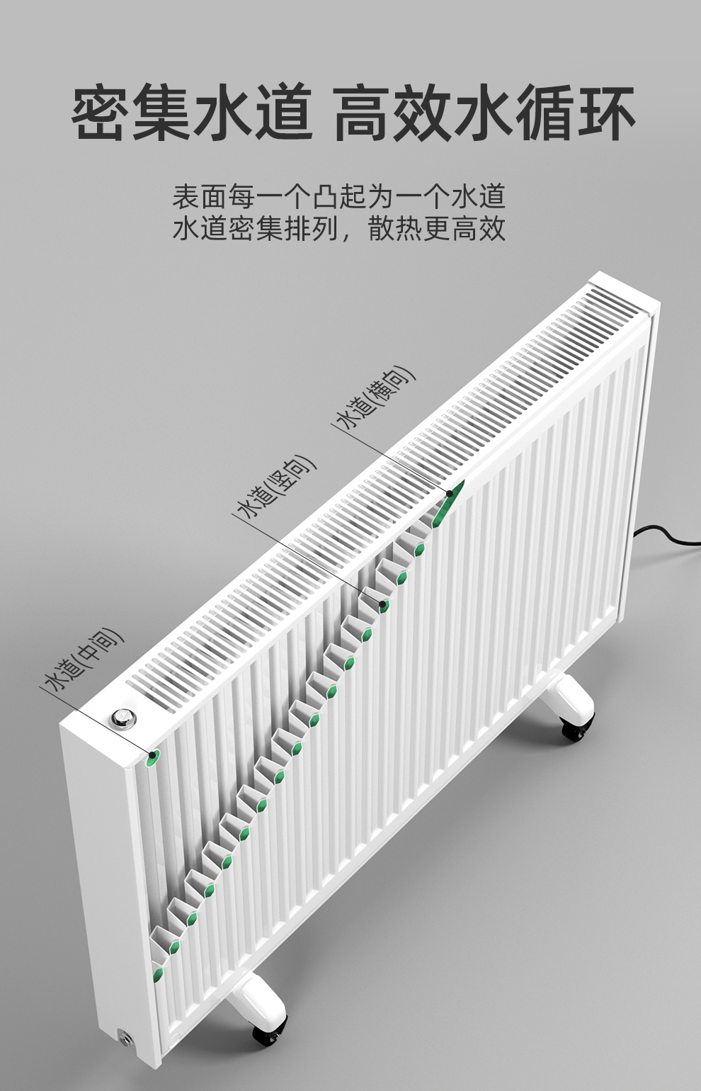 节能环保:与传统的电暖气不同,水循环电暖器利用水的高比热容可以快速传递热量,减少了电能消耗。同时,它不直接燃烧化石燃料,避免了温室气体的排放,是绿色低碳生活的一大助力。