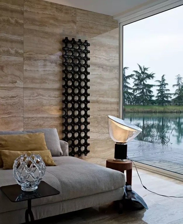 板凳式散热器在玻璃下面安装了LED灯,从内部散发出温暖的光芒。